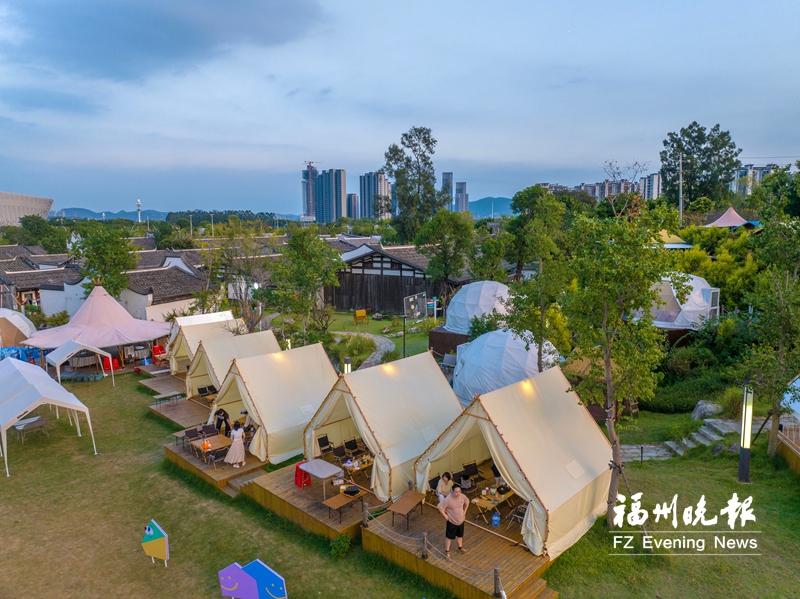 这个假期,福州露营热潮不减,各大营地推出“露营+”新玩法。位于晋安的隐野茶谷营地是福州首个茶主题特色“野奢”营地,连日来持续客满。“国庆前,营地升级了茶山木平台观景泡茶区,将自然景观与休闲体验完美融合,主打慢生活的松弛感。”营地相关负责人说。