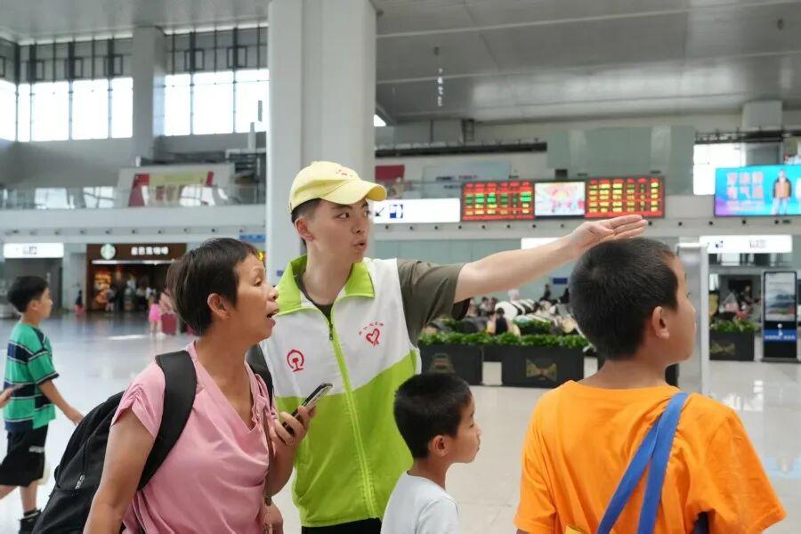 在服务保障方面,车站结合客流特点推出多项便民举措。一方面在进站环节优化流线设计,开启实名制验证口51个、安检查危仪24台,并增设“急客通道”,为临近发车的旅客提供快速进站服务;另一方面,候车区域增派由党团员、青年志愿者组成的服务队,在验证区、安检区、检票口、地道、电梯口等旅客容易聚集和涉及旅客乘降的重点部位进行区域强化组织和宣传提示。此外,针对夜间返程旅客,车站还与市政、交警、公交、地铁、出租车等部门紧密对接,做好信息互通,确保夜间到达旅客顺利接续换乘,实现“最后一公里”无障碍通行。