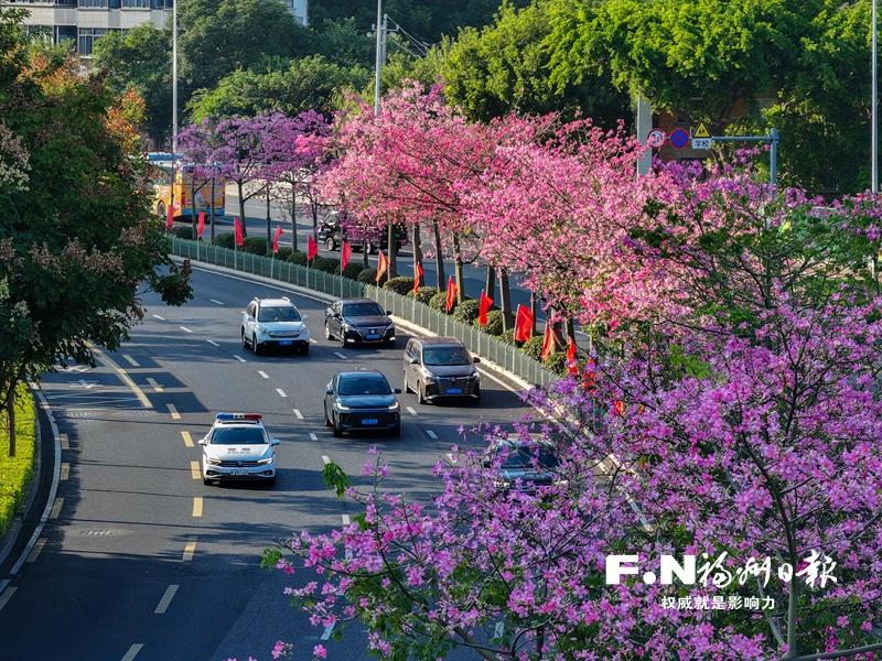 从国庆长假开始,在远洋路和国货东路的分车带上,300多株美人树进入盛花期,为福州增加了秋日的浪漫。