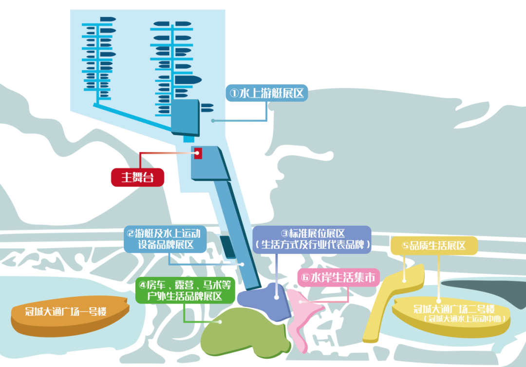 3.标准展位展区:该区域将设置标准展位,汇集游艇协会、水上运动服务商、游艇驾照培训等展商。