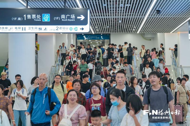 国庆中秋长假,刚开通不久的福州滨海快线迎来大客流。记者 原浩 摄