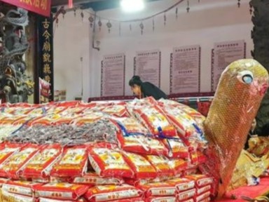 两岸同胞共话文化遗产保护传承 16888斤大米堆塑米龟亮相祈福