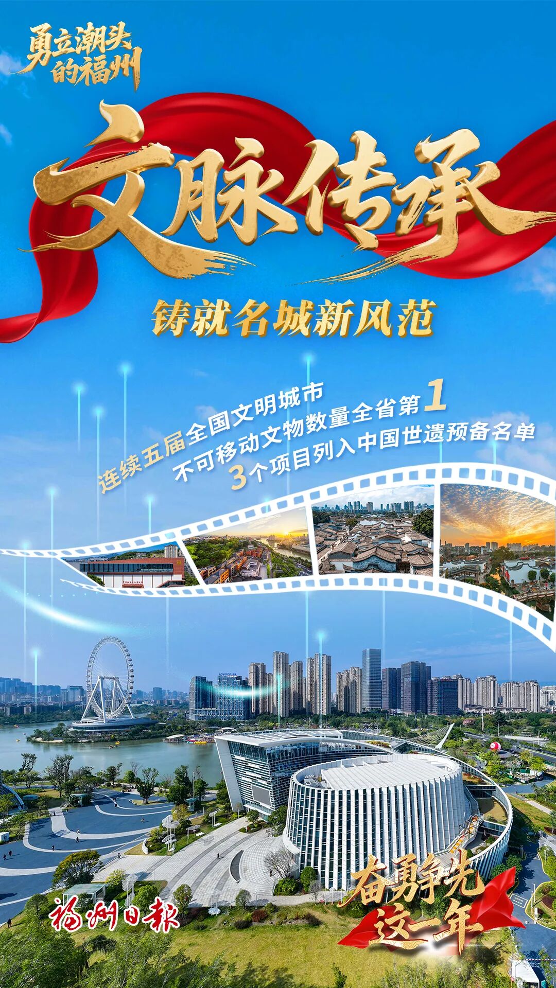 文化,是一座城市最持久、最深厚的竞争力。福州创新机制,严格实行地上文物“先调查、后建设”和地下文物“先考古、后出让”的保护模式。第四次全国文物普查中新发现文物1197处,福州不可移动文物数量稳居全省首位。加强历史文化遗产保护传承和活化利用,扎实推进万里茶道联合申遗工作,打造更高水平的文化强市。三坊七巷、福州海丝史迹、船政文化史迹已列入中国世界文化遗产预备名单,闽都文化正加速走向世界舞台。