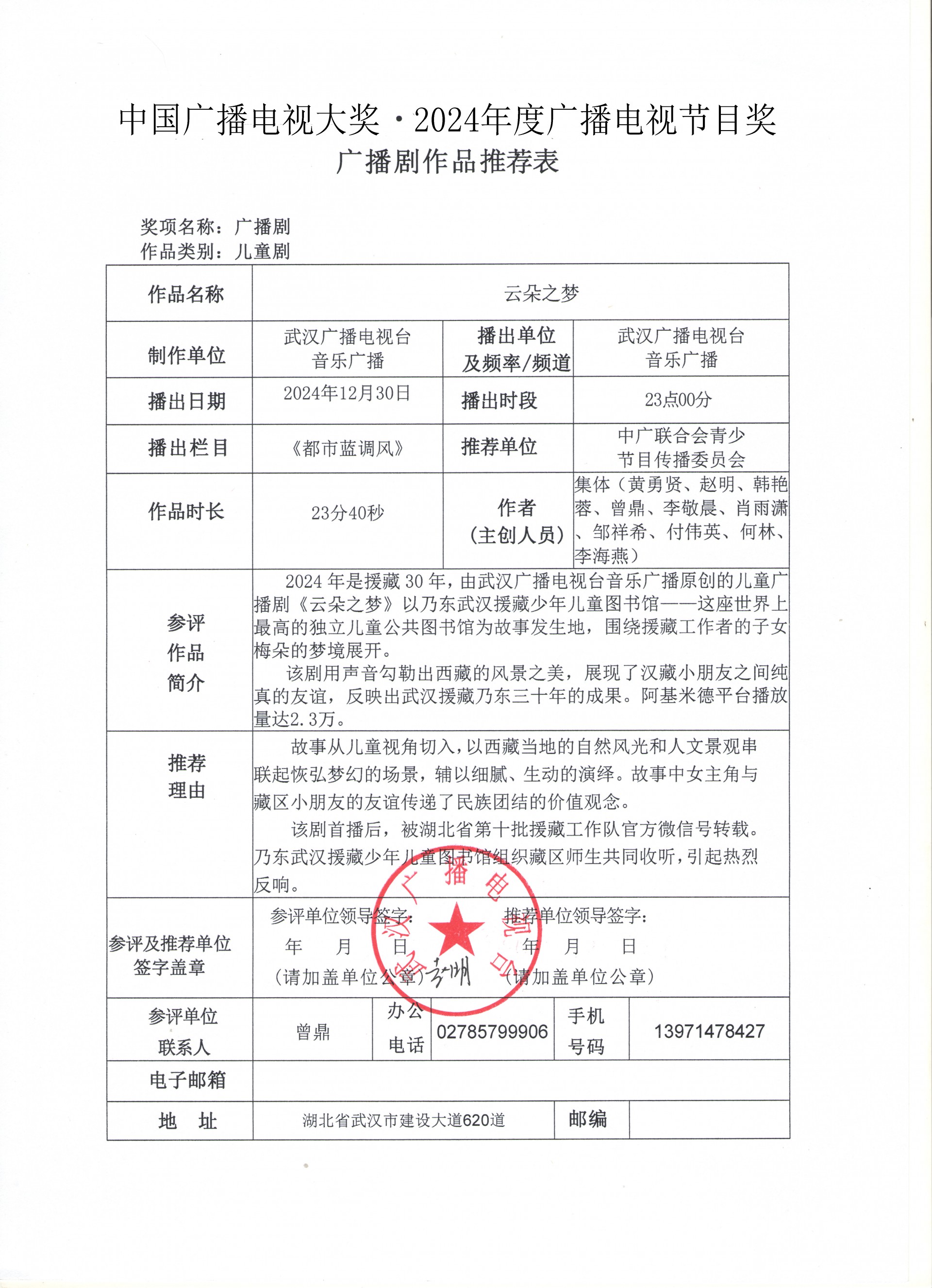 根据中广联合会《中国广播电视大奖·2024年度广播电视节目奖评选办法》的相关规定,青少广播节目委员会于5月29日在北京举办了中国广播电视大奖·2024年度广播电视节目奖(广播剧类)作品初评会,在中广联合会委派初评监督员的见证下,经过7位评委现场集体讨论评议,最终在5件参评作品中,确定以下2件作品,由我会推荐参评2024年度广播电视节目奖。现将参评作品相关情况进行公示,欢迎各会员单位监督、评议。