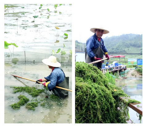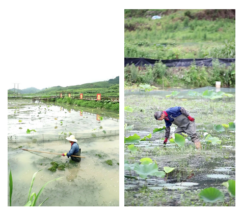 原来,满盾村的小龙虾采用的是农渔立体综合种养的模式,也就是“荷虾共生”养殖模式。