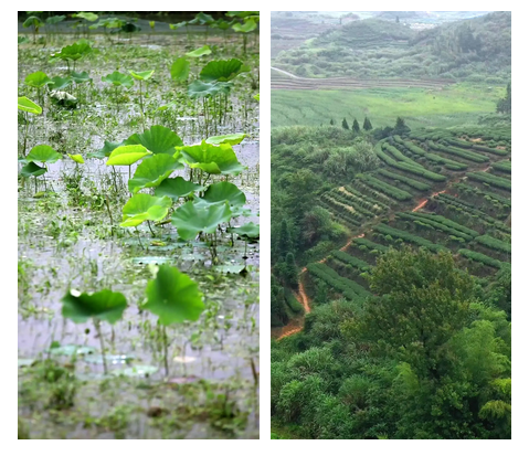 满盾村的荷塘龙虾养殖项目, 采用的是“一田两用、莲虾双收”模式,除了小龙虾养殖基地,还有瓜果蔬菜种植基地、茶山等产业。