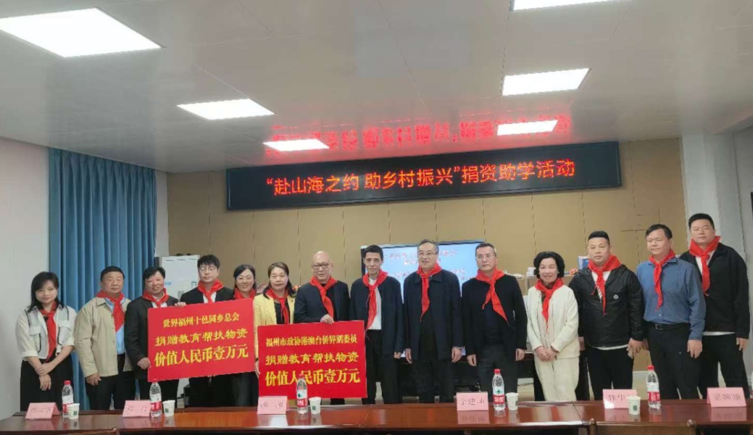 活动中,福州市政协一行参观了赤门小学教学楼、体育场、学生绘画展,听取了学校教学情况介绍,并与学校师生齐聚会议室,共同见证这份跨越山海、情系乡村的教育爱心联结。捐赠仪式上,福州市政协委员黄峰、林子夏分别代表福州市政协港澳台侨界别委员、世界福州十邑同乡总会,共向学校捐赠价值20000元的办公用品和学习体育用品,支持山区儿童更好地学习生活、健康成长,激励他们积极向上,用优异的成绩和未来的成就回馈社会,为乡村教育注入蓬勃力量。