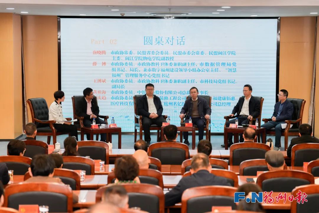 市政协委员薛博、王博斌、唐晓腾、黄祖海、王庆趋等围绕福州市AI政策支撑、AI赋能政协履职、AI与教育、科技创新、AI与产业等相关话题展开对话讨论。