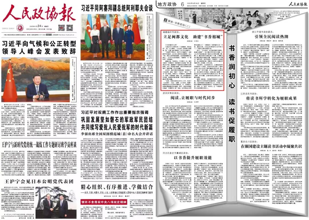 近年来,福州市政协持续创建“书香政协”文化品牌,通过“编书”“送书”“读书”“讲书”四个层面,不断扩大“书香政协”品牌影响力,助推“书香榕城”建设,进一步挖掘闽都文化内涵,持续讲好福州故事,为现代化国际城市建设汇聚正能量。