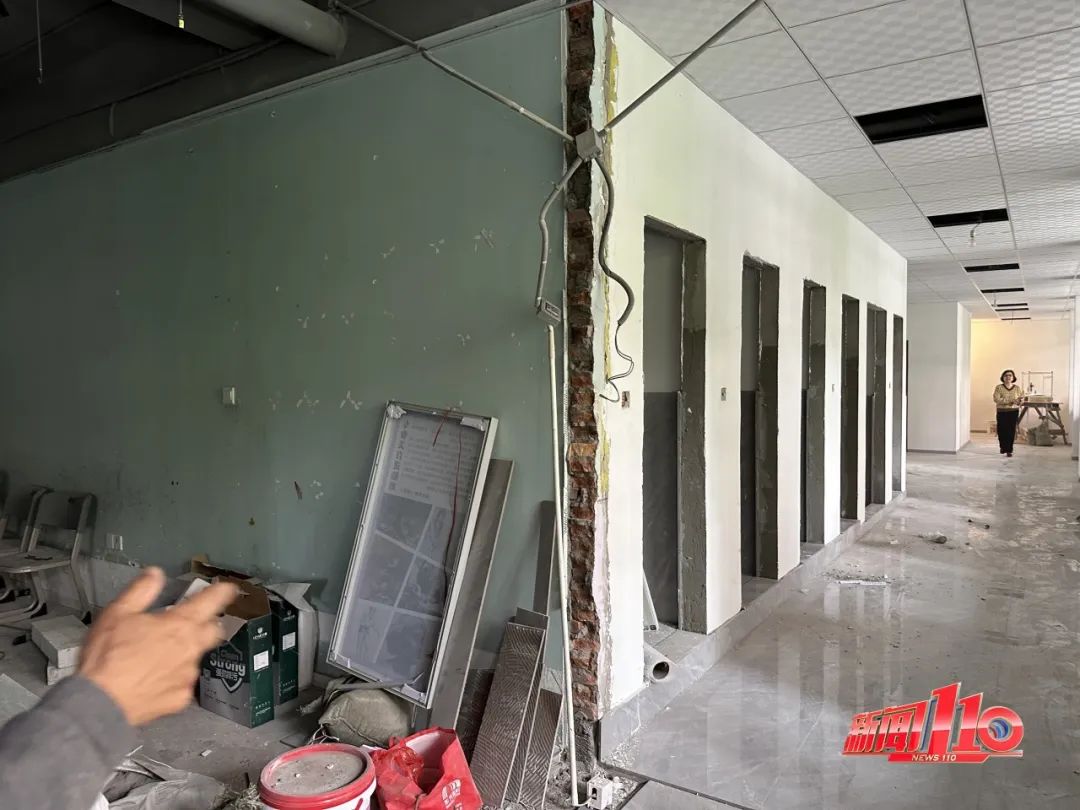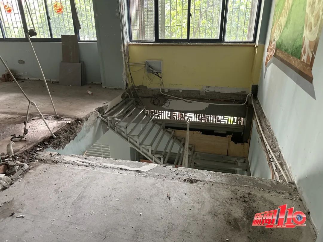 记者现场探访发现,欣荣楼底层商铺正在进行内部改造。该商铺被分隔为上下两层,二楼部分地面被打穿,一处下方搭建起了直通一楼的楼梯,另一处楼板的钢筋裸露在外。此外,二楼还被隔出多个单间。