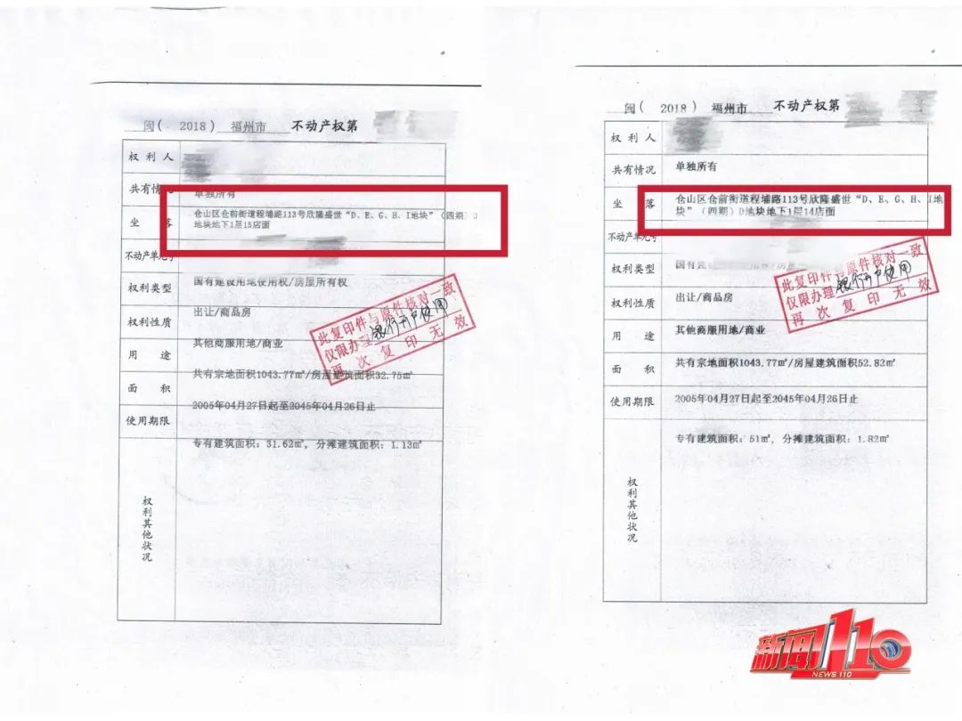 仓山区仓前街道公园社区党委书记 陈镜清:上面备注的一层,就是业主说的架空层。我们从实际路面上看的话,是属于二层的一个位置。楼下两间的产权证店面编码是14和15,在产权证备注的是地下一层。说明楼上的三间跟楼下这两间就是店面,是有产权的,产权都是个人的。
