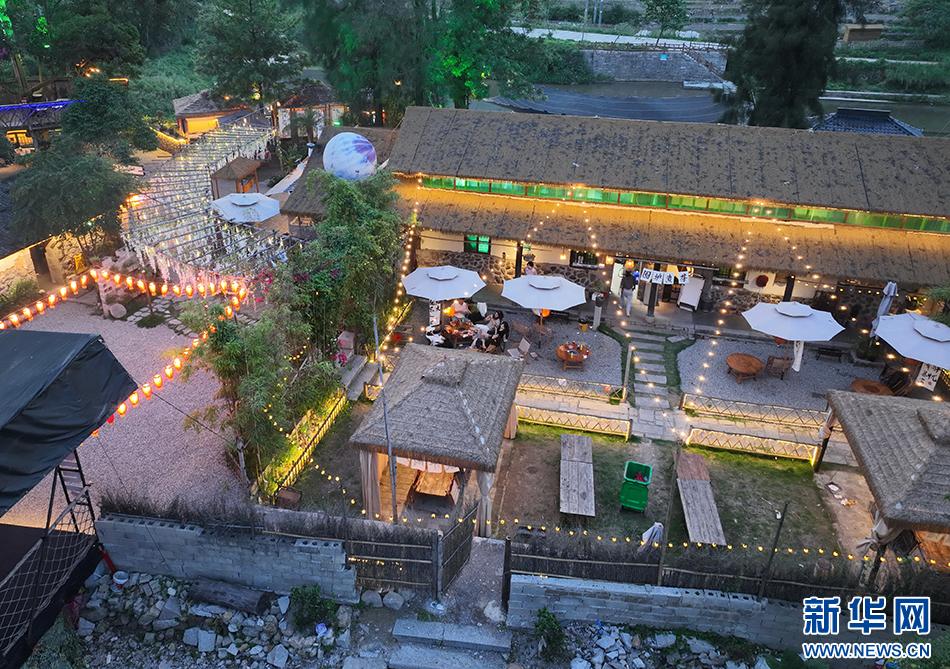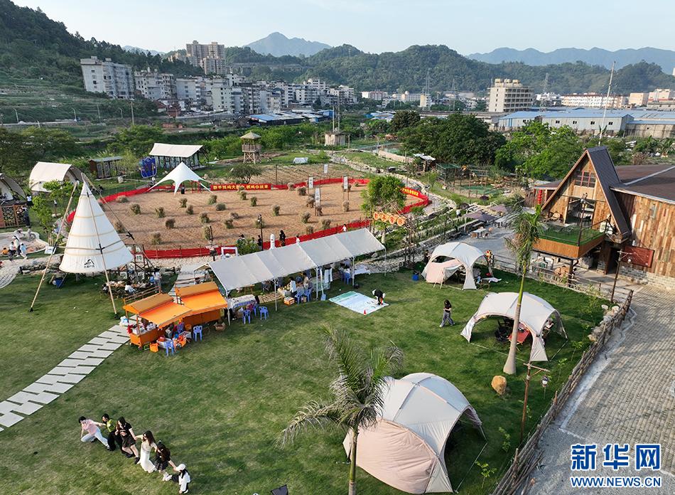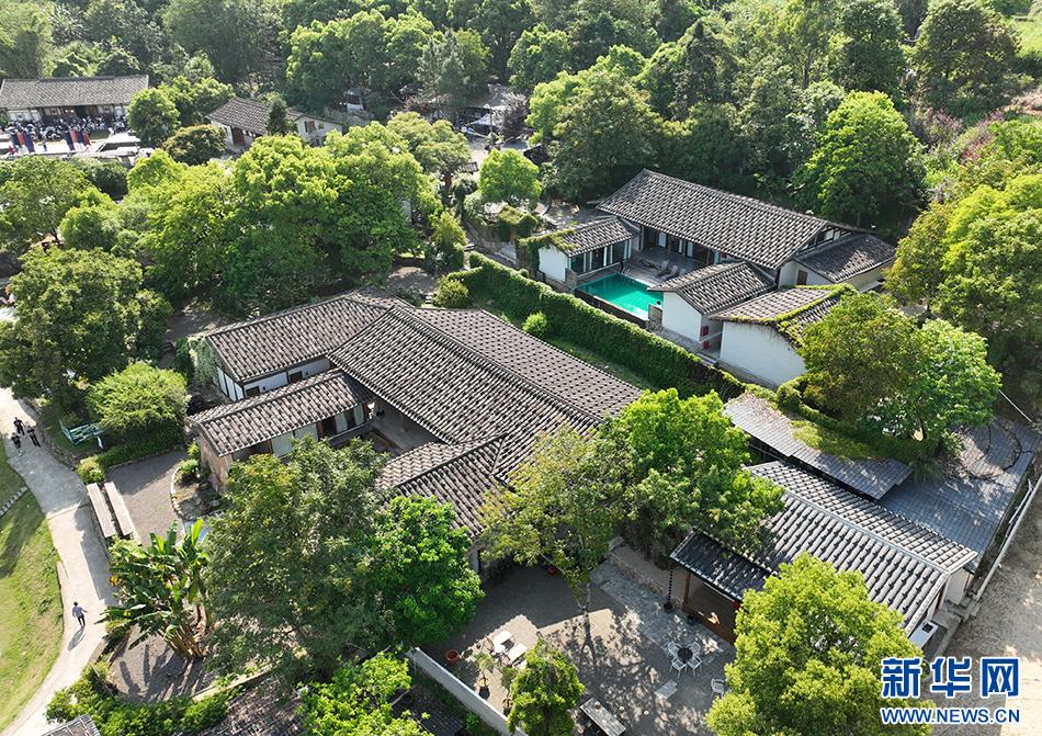 5月2日,通过挖掘罗宁古官道文化内涵、利用古厝和废弃垃圾场建成的“新亭驿站”,为游客提供感受乡村和古官道文化的休闲园(无人机照片)。新华社记者 林善传 摄