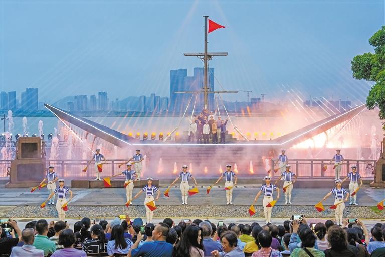 “文旅+演艺”火力全开,众多知名歌手接连在福州开唱,其中一名歌手由衷赞叹,“有福之州,真是一个宜居的城市”,为福州形象添彩。本土沉浸式演艺同样亮眼,《最忆船政》成为游客热衷项目。2024年以来,福州出台演艺经济扶持办法,成功举办大型营业性演出56场,带动综合消费近90亿元。