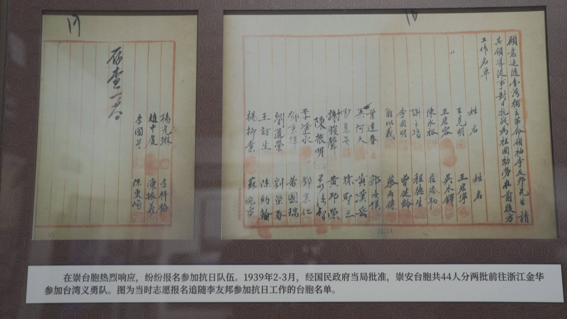 1939年2月到3月,志愿报名追随李友邦参加抗日工作的44名台胞名单,王逸客(王克明)、王正东(王宏宁)、王正西(王宏容)也在名单中。