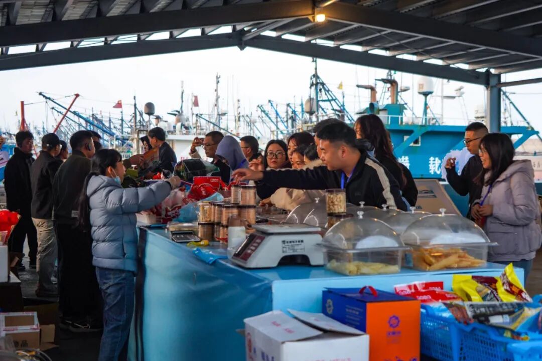 “全国最美渔村”澳角村已成为热门打卡地,游客纷至沓来,购买海鲜制品。饶超毅 摄