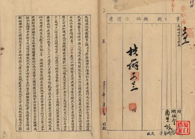 在厦门市档案馆近期举办的抗战主题展览中,一批台湾义勇队档案及台胞申请恢复国籍的珍贵史料首次公开,成为两岸同胞共御外侮的力证。