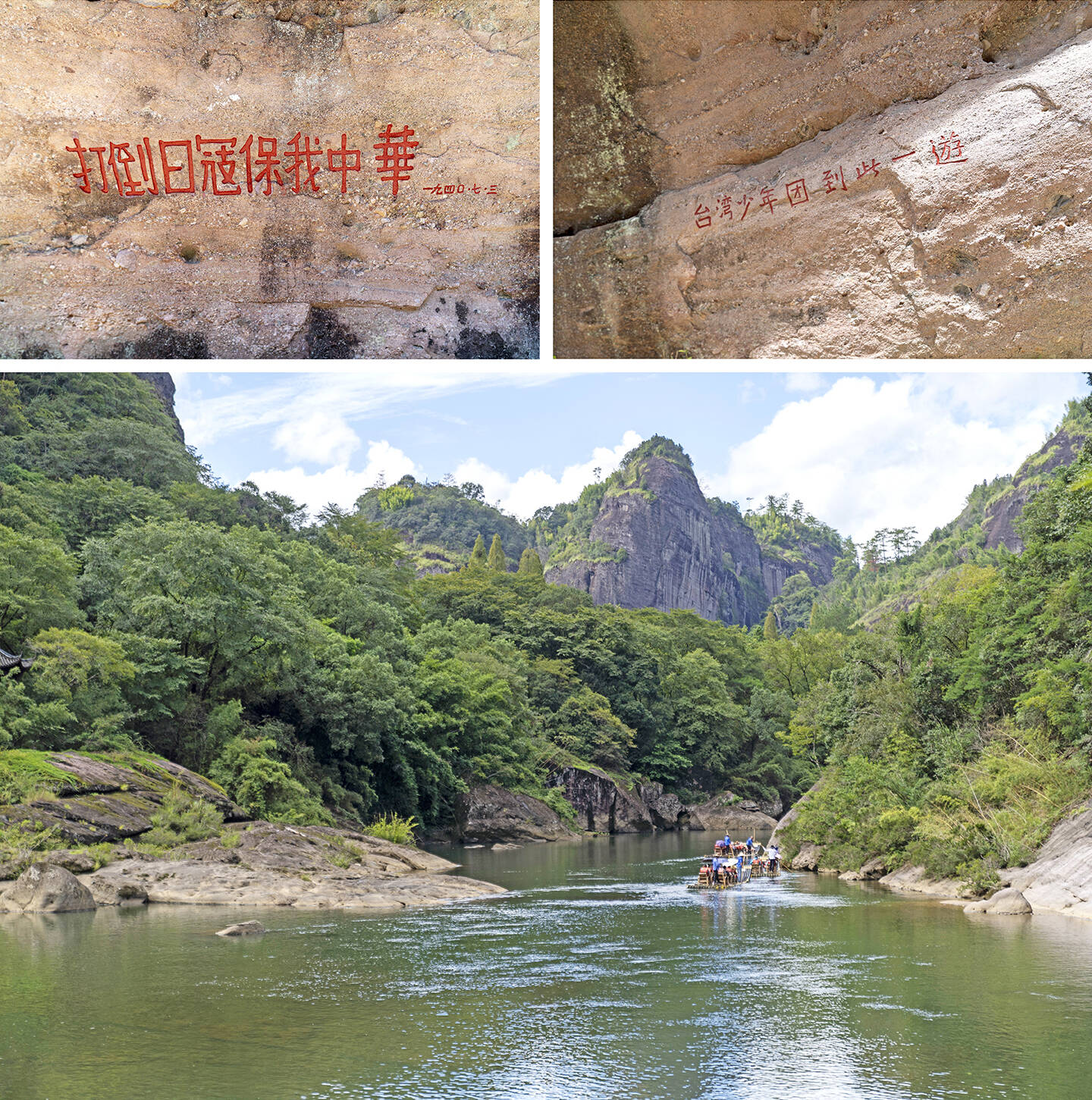1940年7月,在炮火中迅速成长的台湾少年团团员重返福建崇安慰问演出。他们在苍屏峰突遇大雨,躲进一块向外延伸的岩石下避雨,并在此留下“打倒日寇 保我中华”的标语。这深深镌刻在岩壁上的少年心声,成了峥嵘岁月的永恒见证。