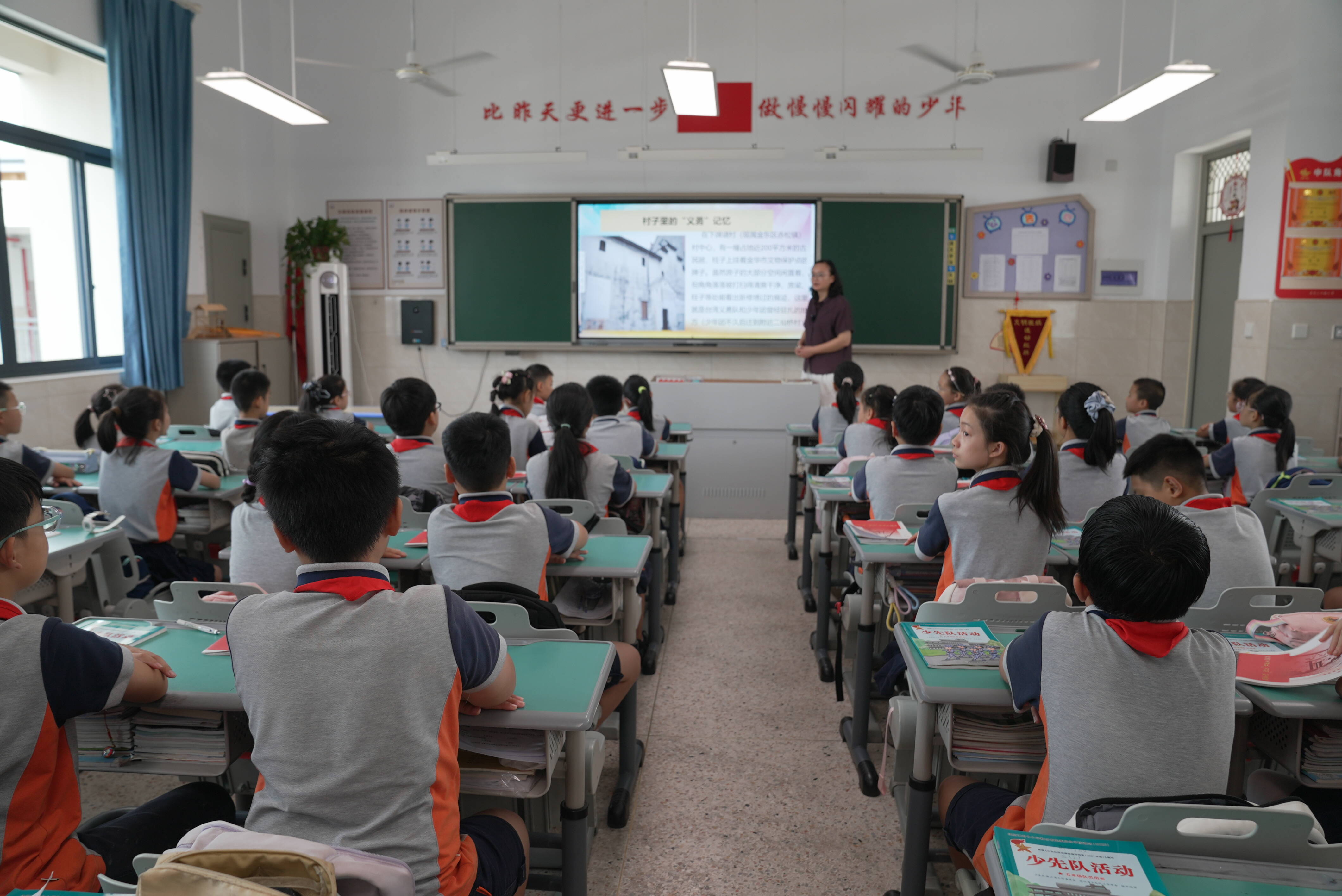 “同学们,你们知道10月25日是什么日子吗?是台湾光复的日子。今天的班队课,让我们认识一支来自台湾的抗战队伍,就是在我们金华成立的台湾义勇队。”金东区仙桥小学五年级(2)班的班队课上,班主任陈茜正通过图文并茂的PPT,将台湾义勇队在金华抗战的故事娓娓道来。