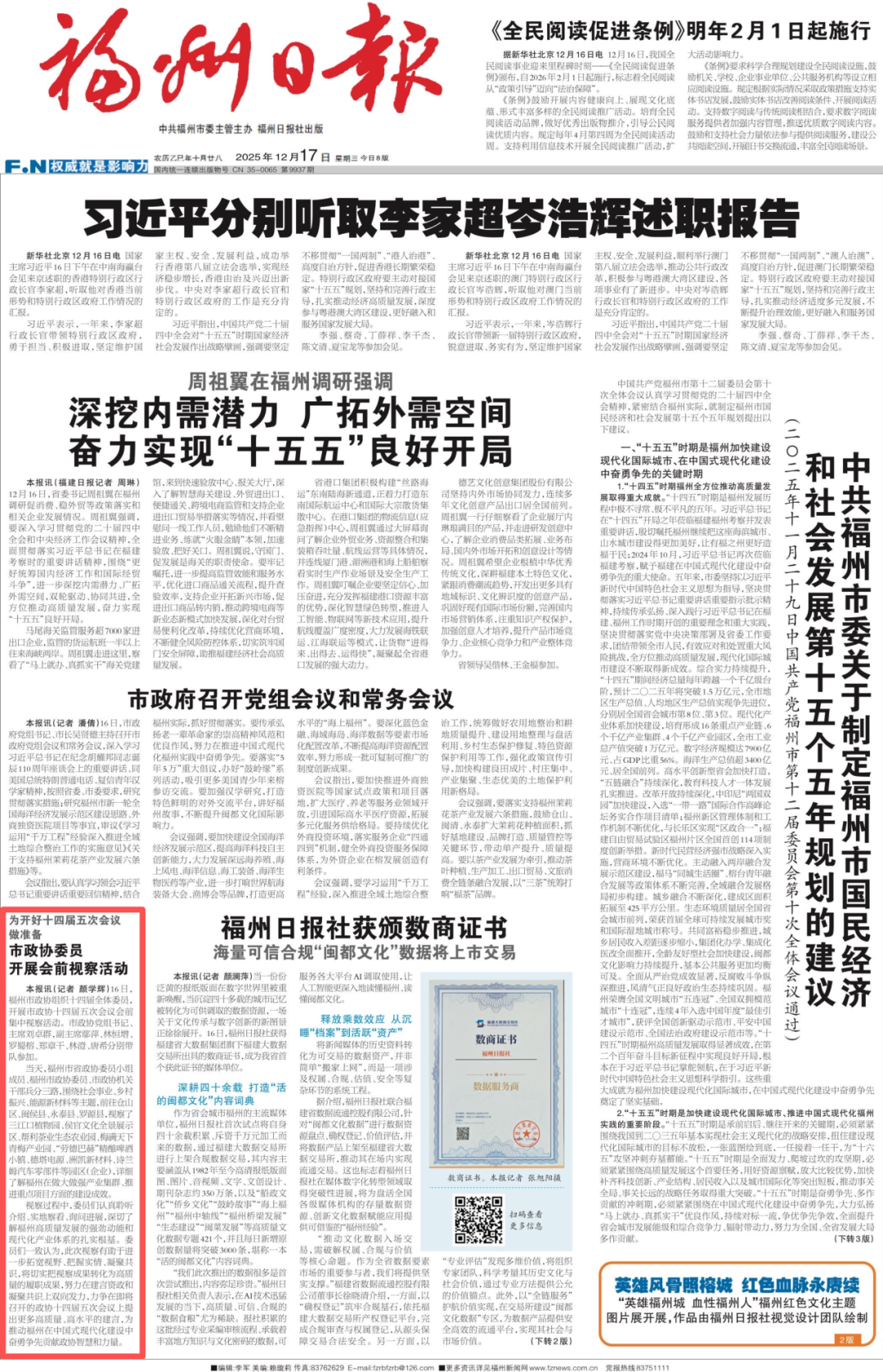 12月16日,福州市政协组织十四届全体委员,开展市政协十四届五次会议会前集中视察活动。市政协党组书记、主席刘卓群,副主席鄢萍、林恒增、罗蜀榕、郑章干、林澄、唐希分别带队参加。