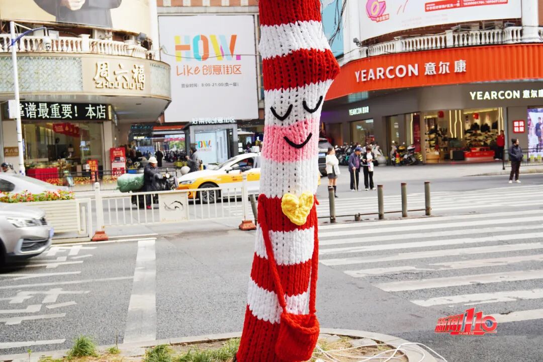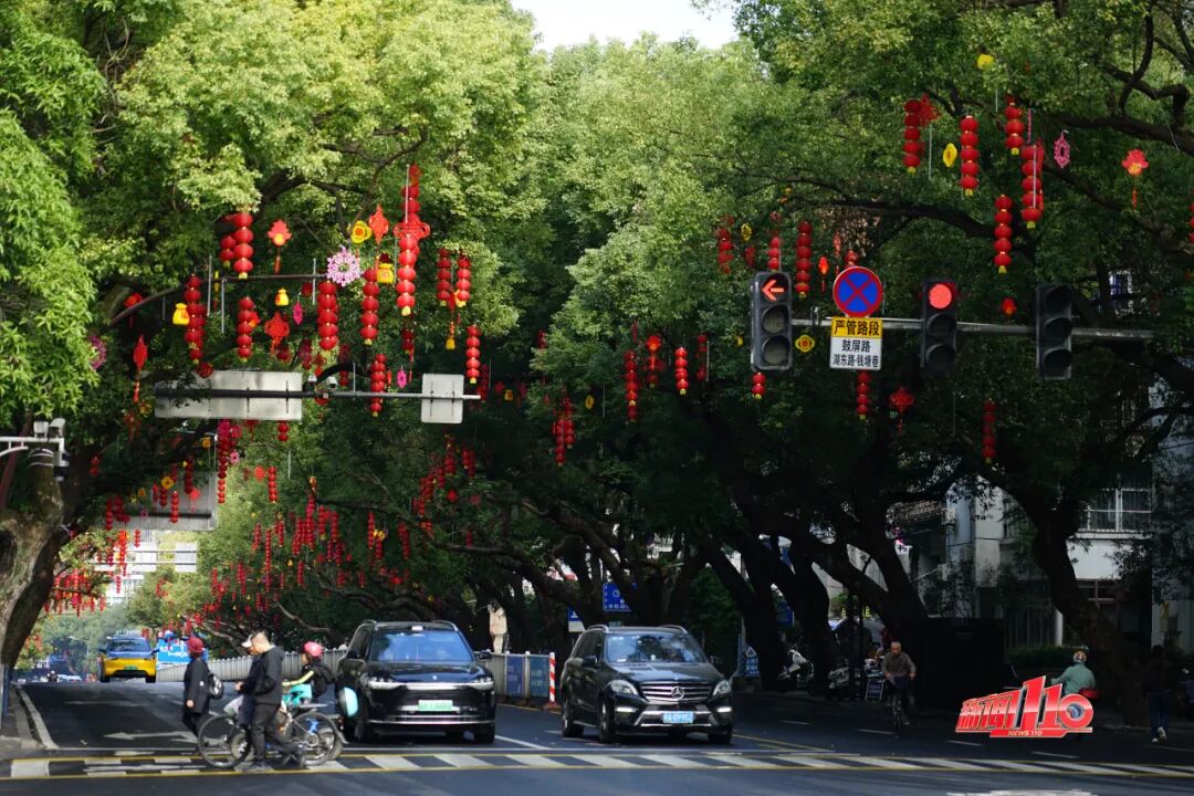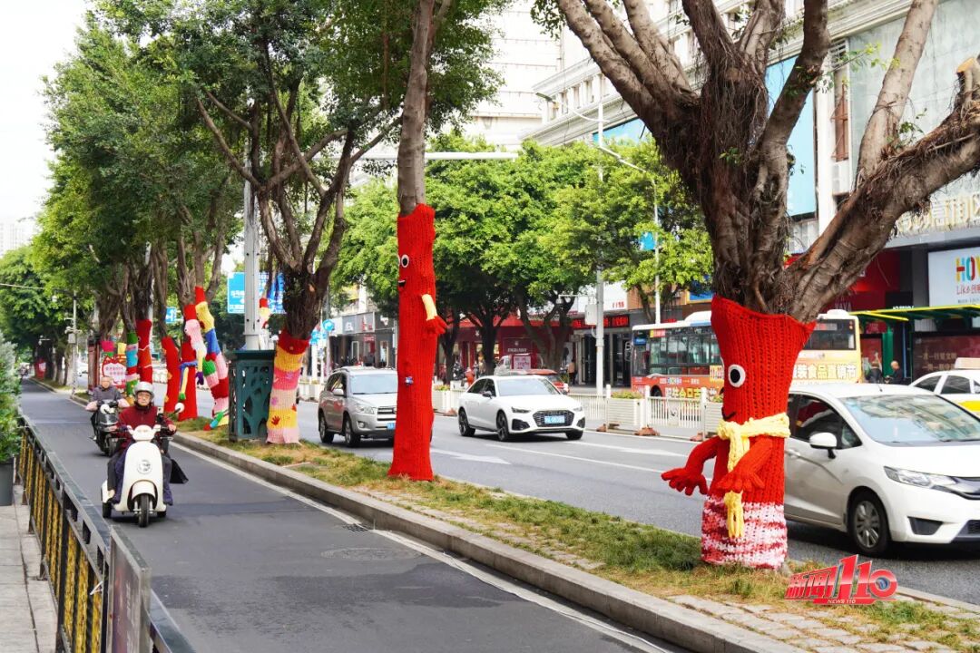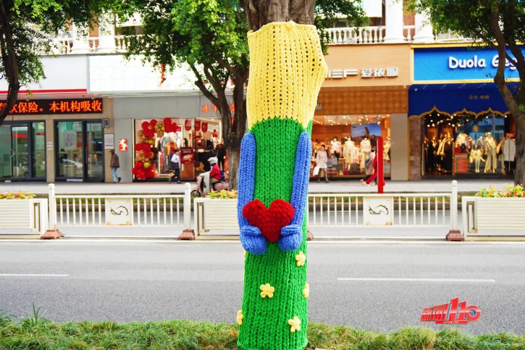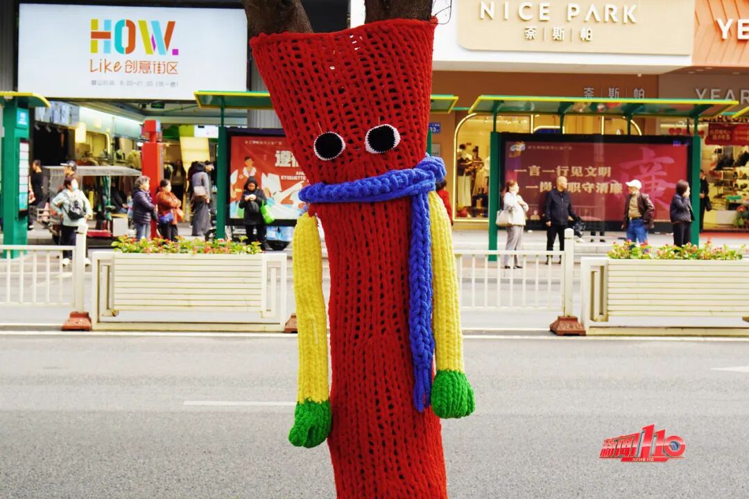 中亭街的树木“穿”起五彩缤纷的“毛衣”。