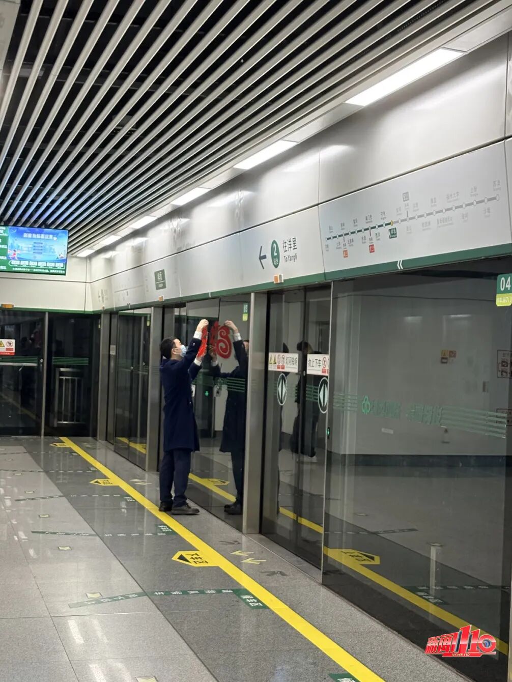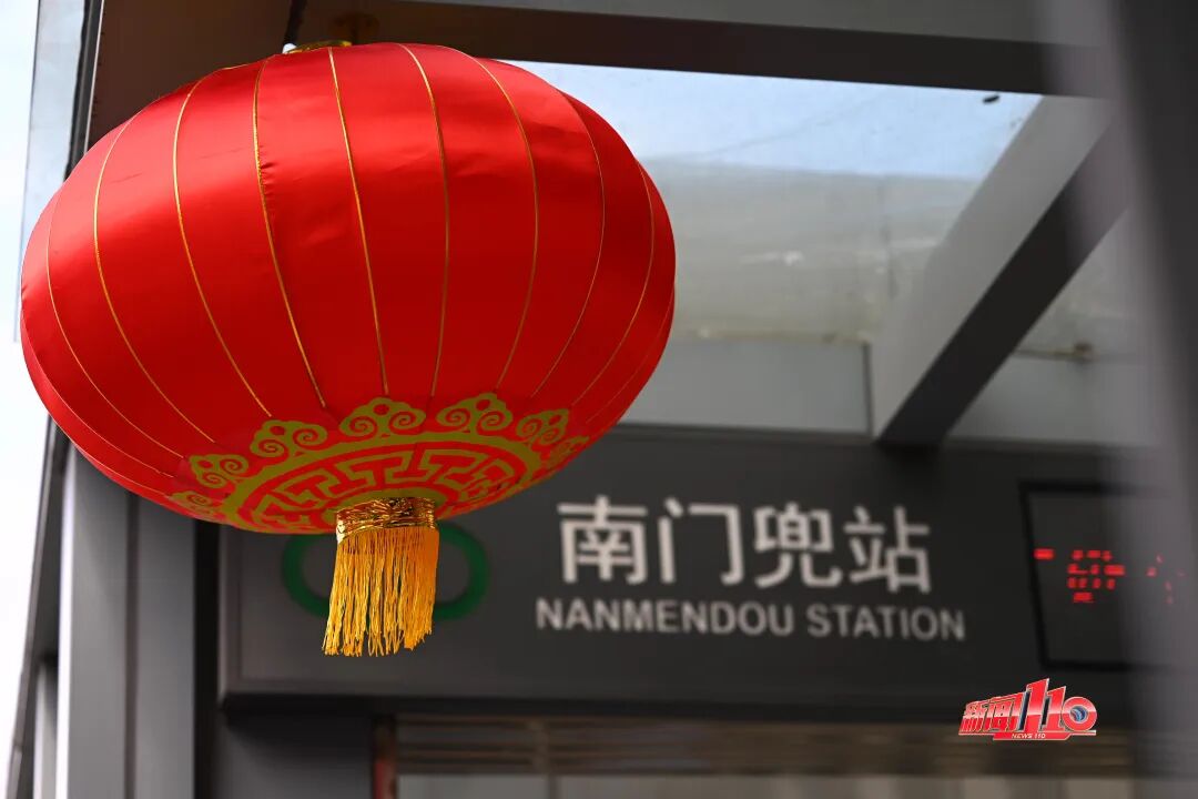 福州地铁也早早地贴上了“福”字窗花,挂上了灯笼。