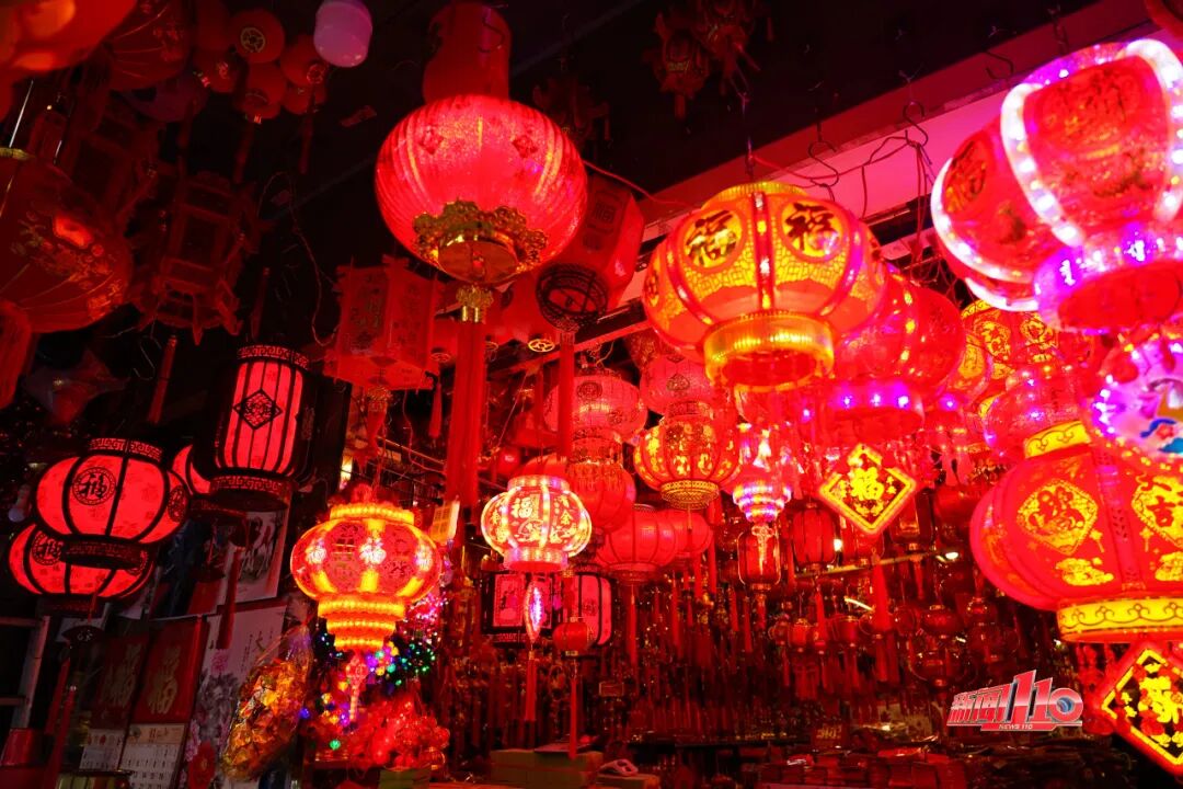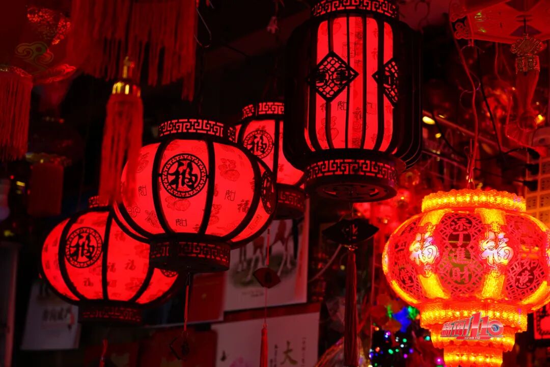 鼓西路的年货店里,大大小小的灯笼高高挂起,令人不禁感叹元旦真的快来了。