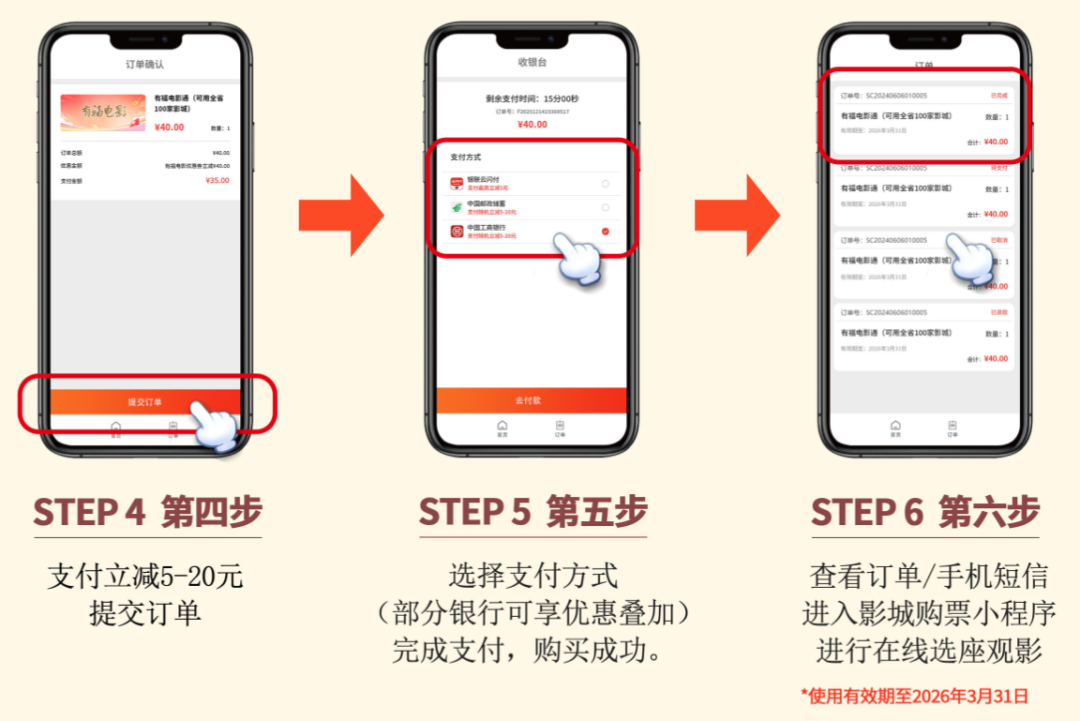 6、所有电影兑换券一经购买,不退不换,过期自动失效(有效期至2026年3月31日)。