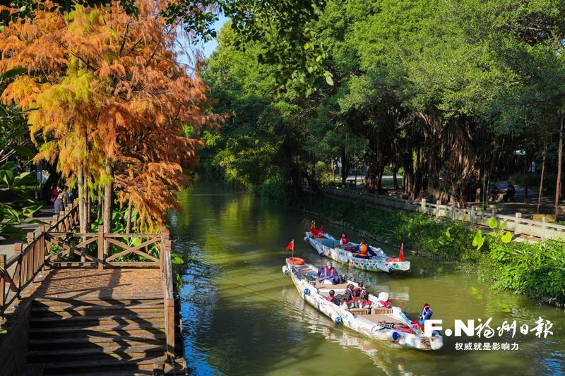 园林专家告诉记者,池杉、枫香等植物都是福州乡土植物,能给冬日增色,目前最佳观赏期约半个月。另据福州水务文旅公司相关负责人介绍,这几天福州天气晴好,元旦以来乘船游客数量稳定上升。“龙舟游船和新打造的花船内配备舒适座椅,我们全程提供细致讲解,沿途介绍景点历史典故,游客不仅能在冬日暖阳中赏景,还能在内河游中感受闽都文化底蕴。”负责人说。
