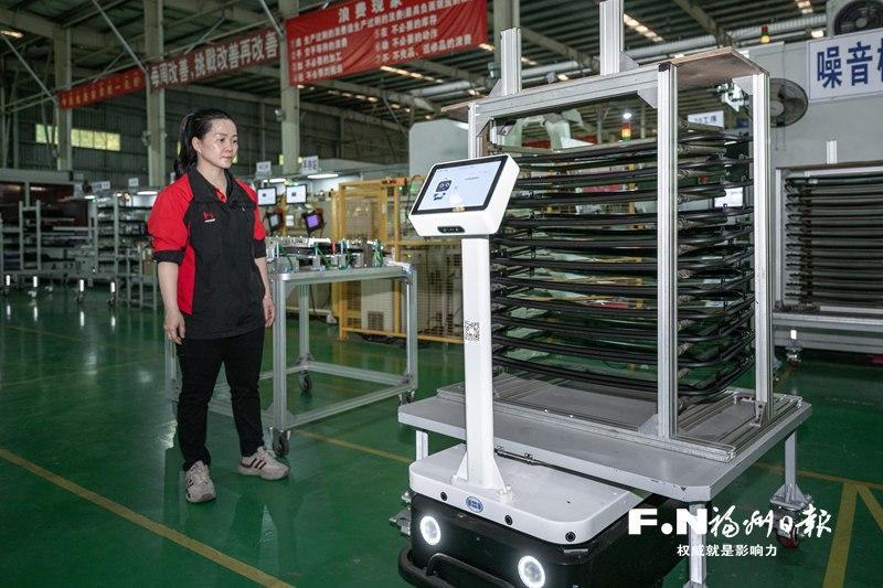 机器人“笨小递”在福州明芳汽车部件工业有限公司生产线上忙碌。记者 林双伟 摄