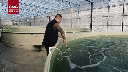 记者走进育苗基地看到,数个标准化育苗池整齐排列,绿鳍马面鲀鱼苗正在池中穿梭游动。池边,技术人员正专注地监测水温、盐度等关键参数,并不时用纱网捞起几尾鱼苗放入透明烧杯中,仔细观察其活力与体态。