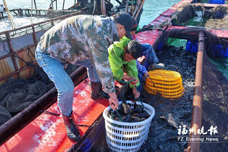 连日来,在安凯乡沙澳湾海域,渔民们用网兜和箩筐将一条条体型饱满的石斑鱼、春只鱼、大黄鱼等多种优质养殖海鱼捞起,随即倒入活水运输船中。