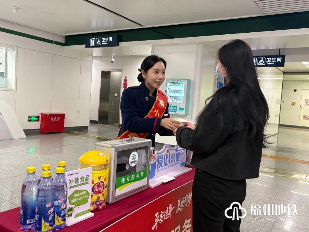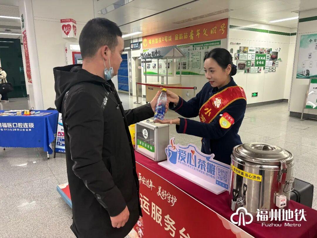 寒冬暖意浓,茶摊送温情。春运服务台特设爱心茶摊,为往来学子及乘客免费供应热开水,驱散旅途寒意,传递地铁温度。