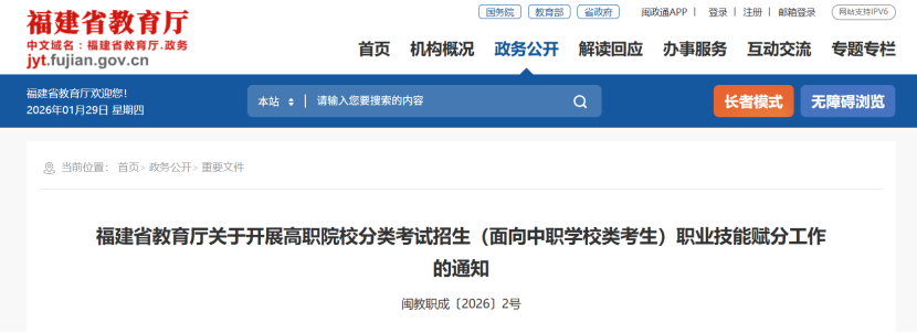 最新消息!福建省教育厅发布通知,对高职分类招考中面向中职类考生的职业技能赋分标准进行详细规定。