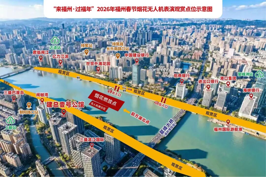 2026年2月17日(正月初一)晚上,“来福州 过福年”烟花无人机表演将首次在鳌峰大桥与闽江大桥之间的闽江江面璀璨绽放。你想要的表演时间、最佳观赏点、交通指南这里全都有!