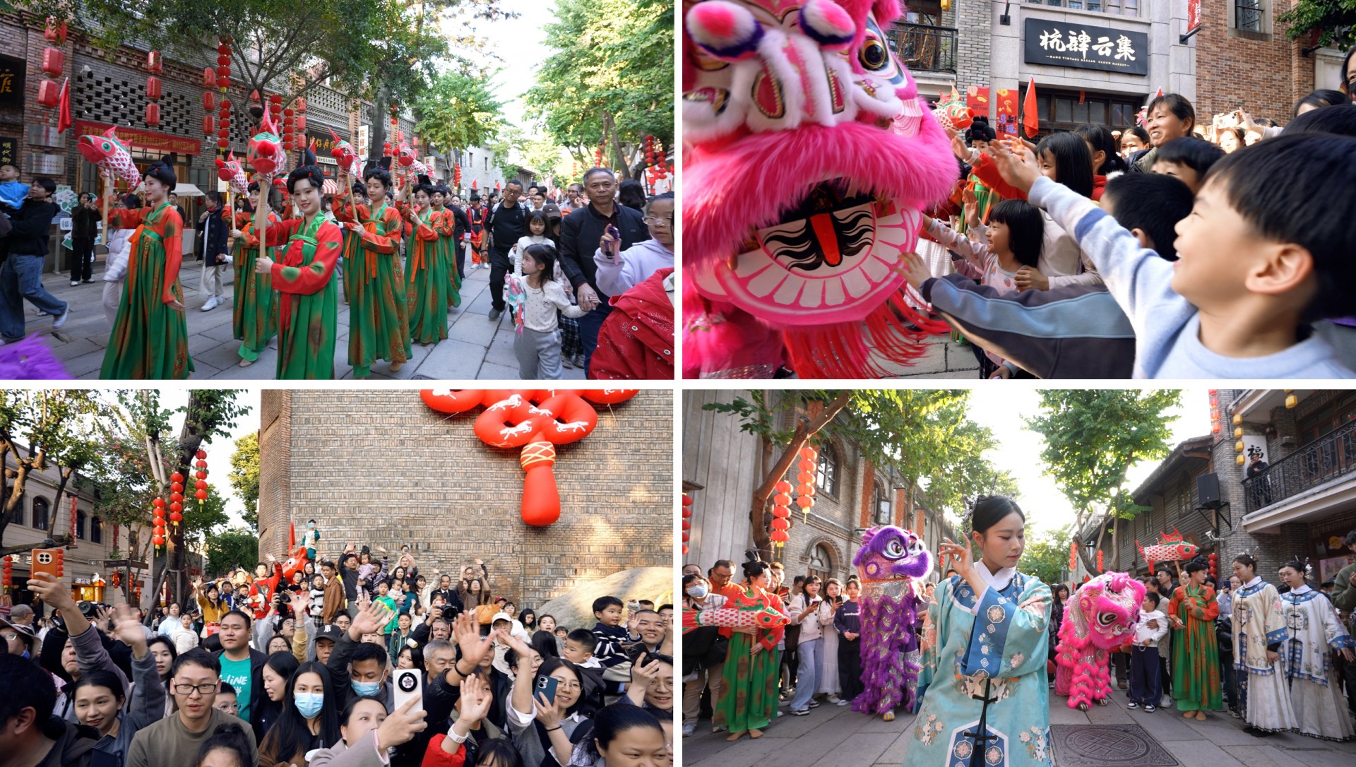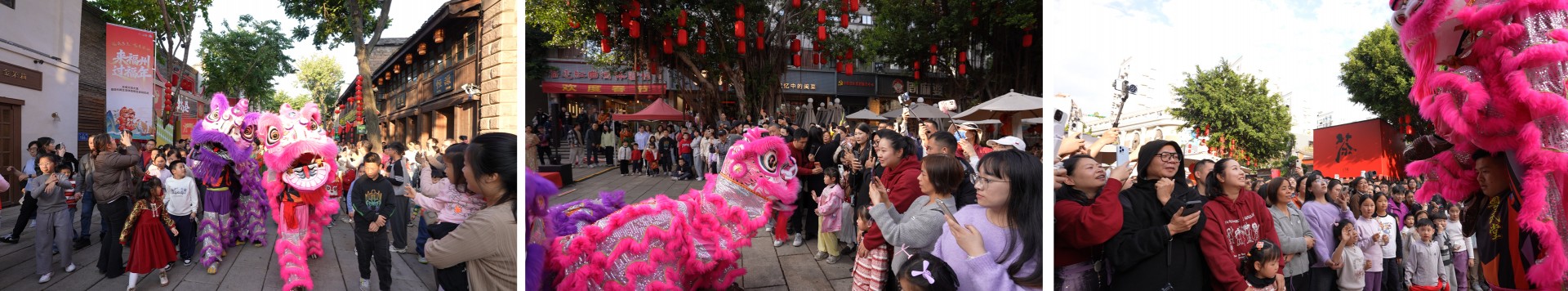 现场满是欢声笑语,不少游客循着非遗巡游的脚步打卡逛玩,沉浸式感受台江的新春氛围与闽韵文化,红围巾一路飘曳,恰似将台江的老底子和新潮流巧妙串联。一位现场市民也开心分享了自己的体验:“刚在启幕式上幸运收到红围巾,暖烘烘的,先跟着非遗巡游逛了上下杭,再跟着攻略逛到闽江之心,还在青年广场和小马合了影。今年是边走边‘集福’,能感受到台江满是年味和福气!”
