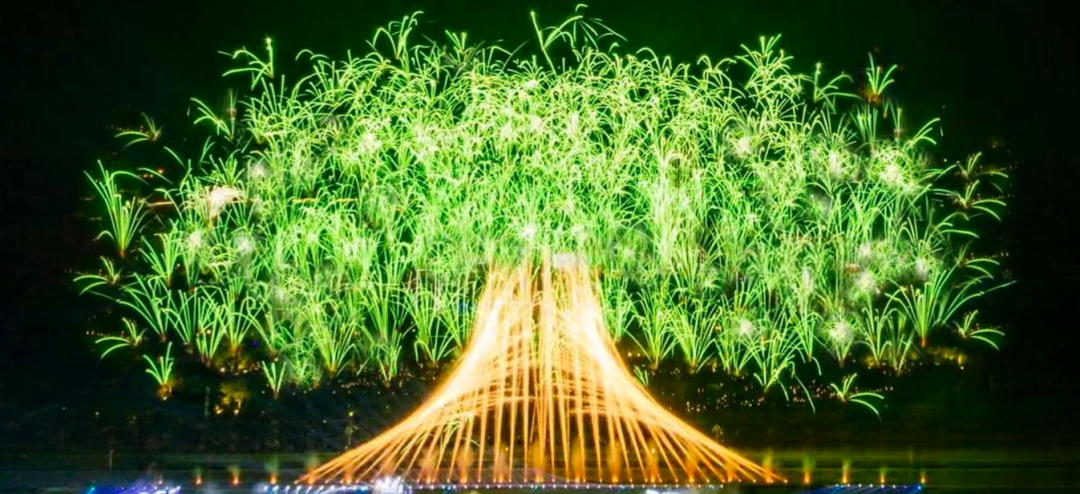 榕城之树烟花秀以苍翠绿意、金色光芒绽放于夜空,既凝聚着榕城以榕为名、因榕而兴的城市根脉,更以葱茏烟花秀之姿,诉说着闽都大地生生不息、繁茂绵长的美好期许。