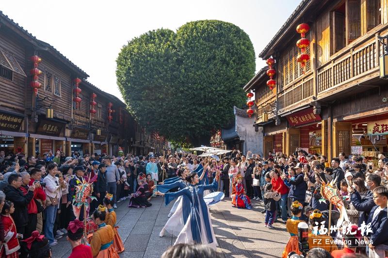 三坊七巷丰富的文化表演吸引了大批游客。