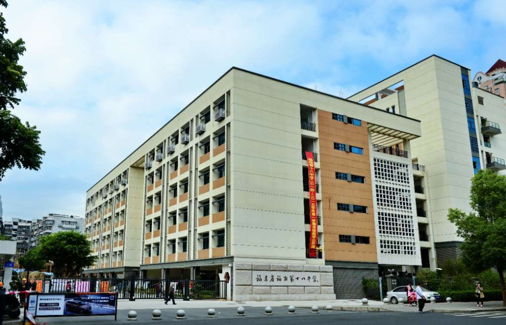 近日,福州第十八中学高中部项目完成竣工验收,预计将于今年秋季开学前投入使用。