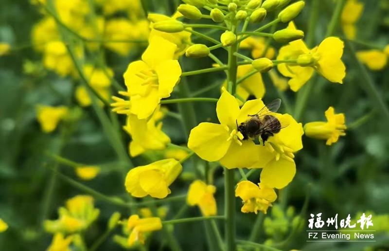 在桃田村,千亩油菜花开放,金黄的花朵如潮水般铺展。蜜蜂在花间穿梭忙碌,仿佛在演奏春天的乐章。