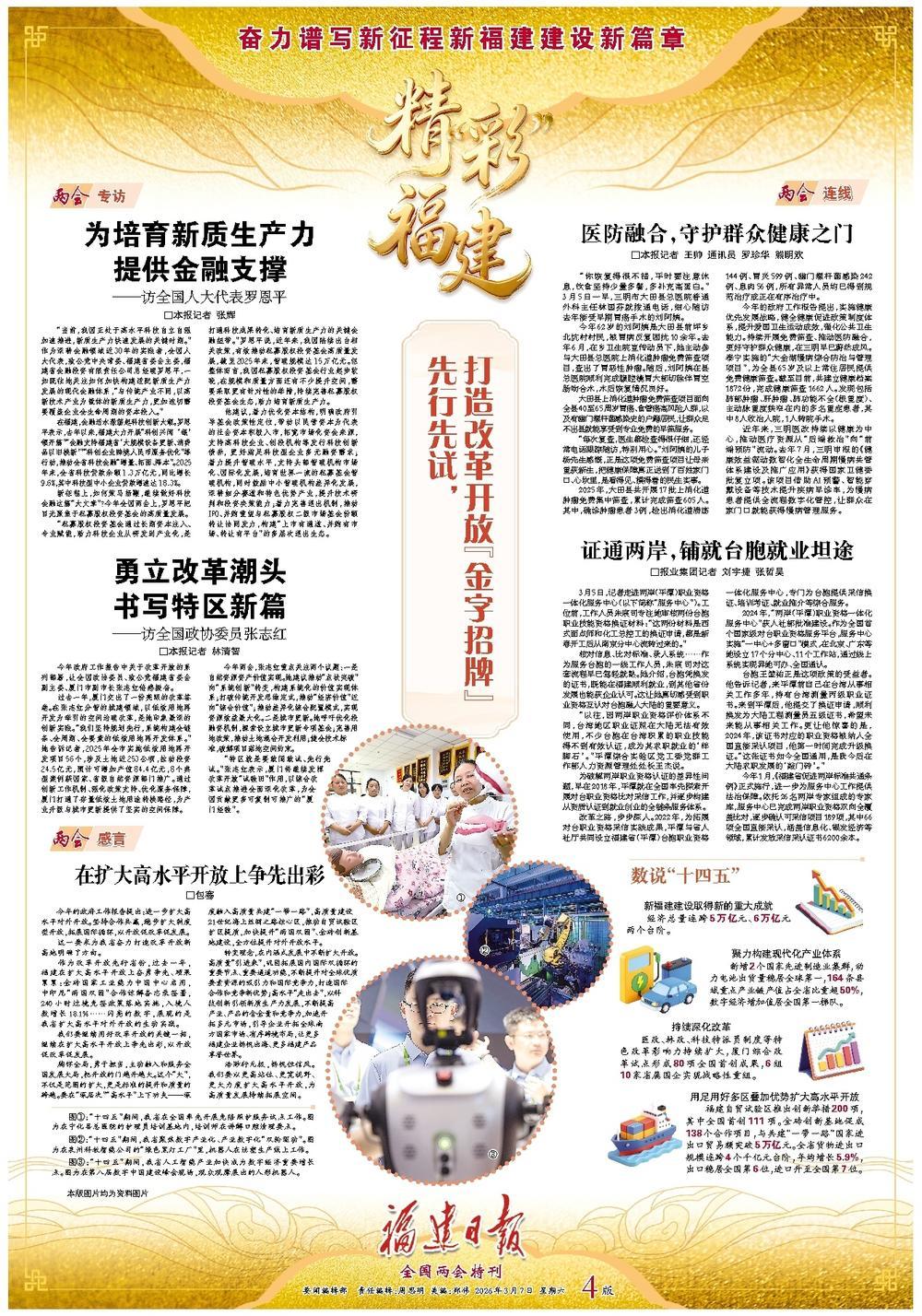 3月7日起,《福建日报》推出《奋力谱写新征程新福建建设新篇章》全国两会特刊·精“彩”福建。具体如下——