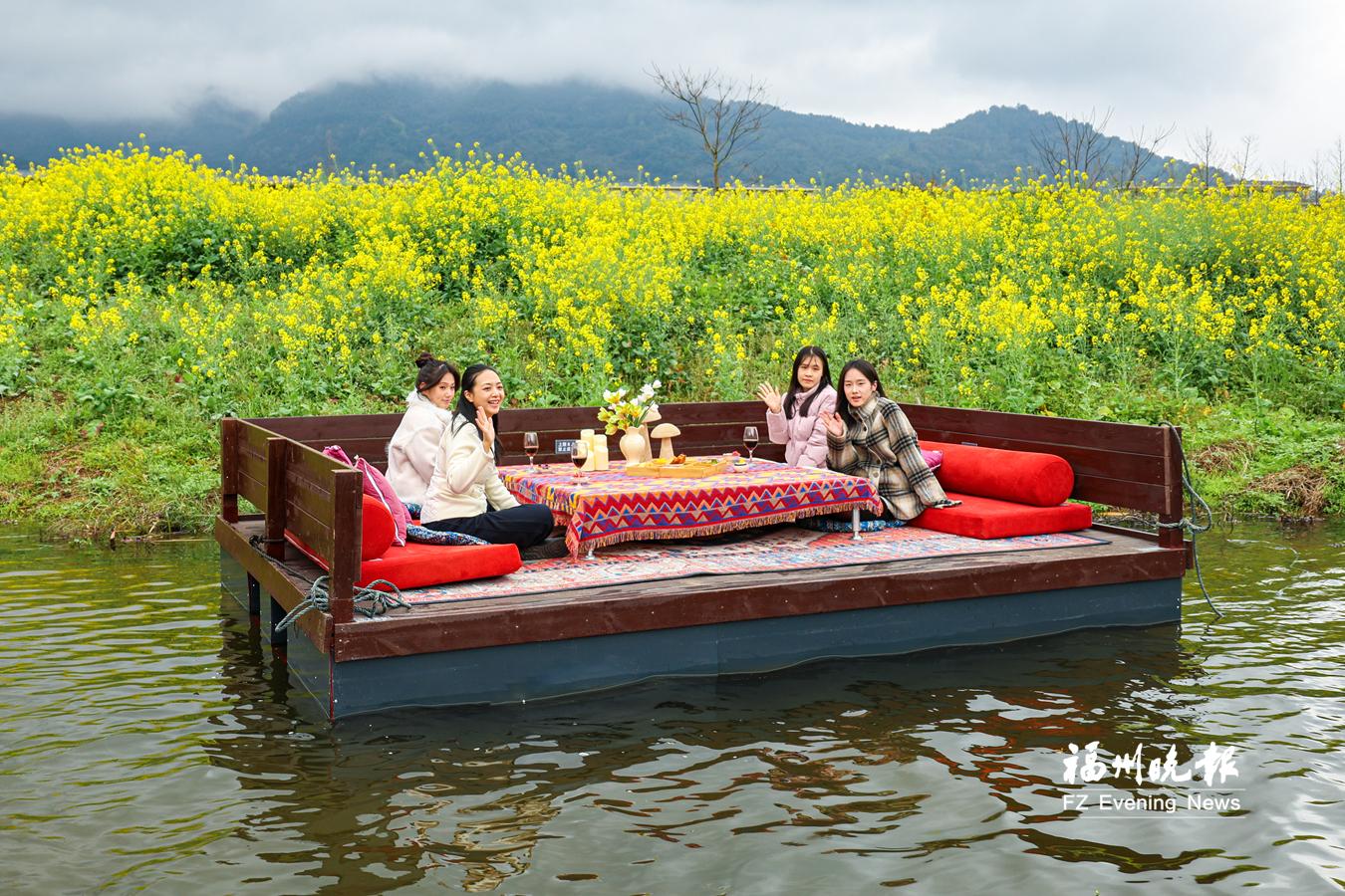 此外,福州新区(长乐区)罗联乡千亩油菜花开放;闽侯县鸿尾乡鸿尾村百亩油菜花也迎来盛花期;连江潘渡镇的景区还推出“悠悠水上”项目,游客可以在水上浮台欣赏油菜花海。