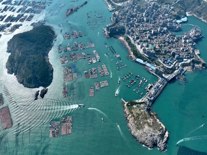 这是2024年12月31日拍摄的福建省连江县海上养殖区(无人机照片)。新华社记者姜克红摄