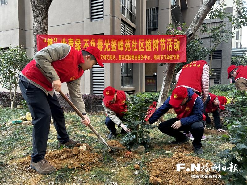 12日上午,市市场监管局党员走进台江区鳌祥佳园小区二期,开展“植此青绿,不负春光”主题党日活动,以实际行动为社区添绿增彩,将生态文明理念根植于基层沃土。经党员志愿者与鳌峰苑社区干部、小区物业人员共同努力,一株株新栽种的树苗迎风挺立,为春日的社区家园增添了盎然生机。