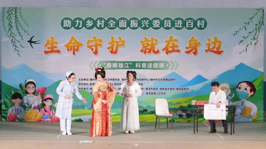 3月11日,福州市政协教科卫体委组织市政协委员、闽清县政协机关、闽清县政协委员与疾控工作人员走进梅雄村,在雄江镇剧场开展“生命守护 就在身边”科普送健康活动,为村民送上专业的健康知识与实用技能。活动以群众喜闻乐见的形式展开,相声《健康66新传》诙谐幽默,情景剧《剪刀石头布,异物卡喉准让路》《娘娘怎么肥事》《家签乐事》生动形象,还有趣味十足的健康知识有奖问答轮番上演,引得现场掌声、笑声不断。活动将急救技巧、科学减重、家庭医生签约等专业医学知识,转化为村民听得懂、学得会、用得上的生活技能,切实提升乡村居民的健康文化素养。剧场后方,主办方还贴心地设置了便民服务点,为群众免费测量血压、血糖,并发放包含健康素养手册、中药香囊等物品的“健康大礼包”,让关爱与祝福延续。