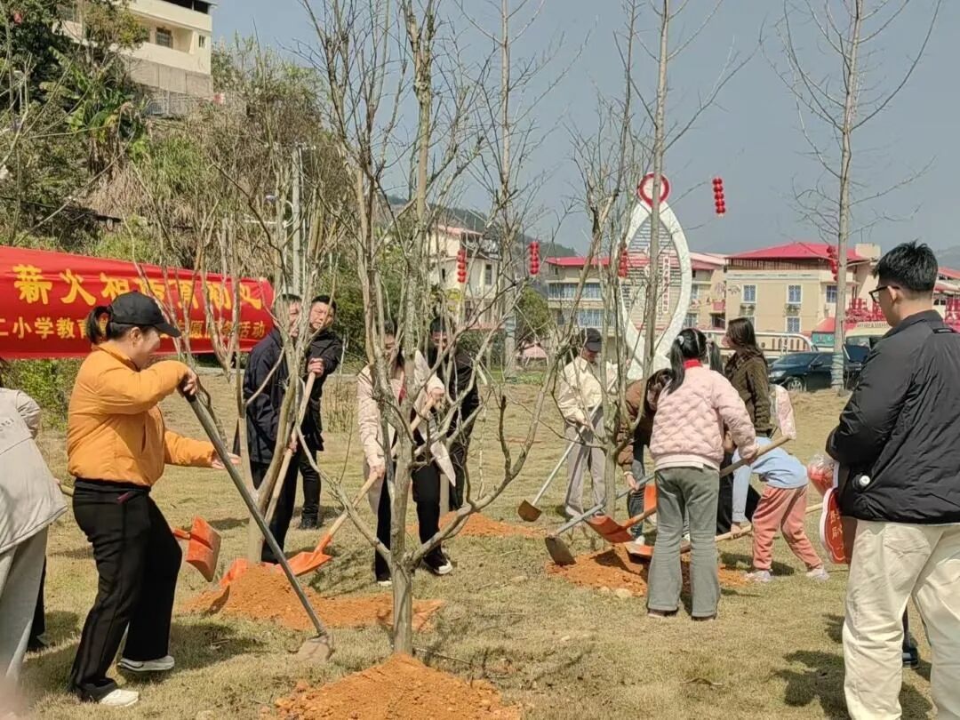 3月7日,春光明媚,二附小教育集团党团队师生代表走进雄江镇,与梅雄村联合开展“携手共建生态林 同心共育文明树”义务植树活动。活动现场,师生与村民分工协作、默契配合,挥锹铲土、扶苗定根、围堰浇水,每一道工序都一丝不苟,一棵棵新苗在春光中挺立,成为校地共建的生动见证。活动中,二附小教育集团与梅雄村共同设立植树共建点,进一步深化校地合作情谊。师生纷纷表示,此次实践活动让大家在劳动中感悟初心使命,在协作中凝聚奋进合力。