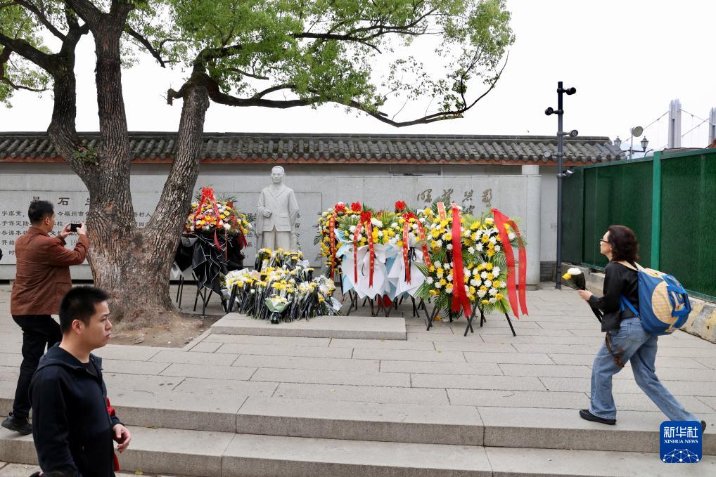 清明将至,在福建省福州市仓山区螺洲镇吴石故居,吴石将军雕像前的黄白菊花层层叠叠,人们以献花、留言、参观英雄事迹展览等方式,表达对革命先烈的缅怀与崇敬。