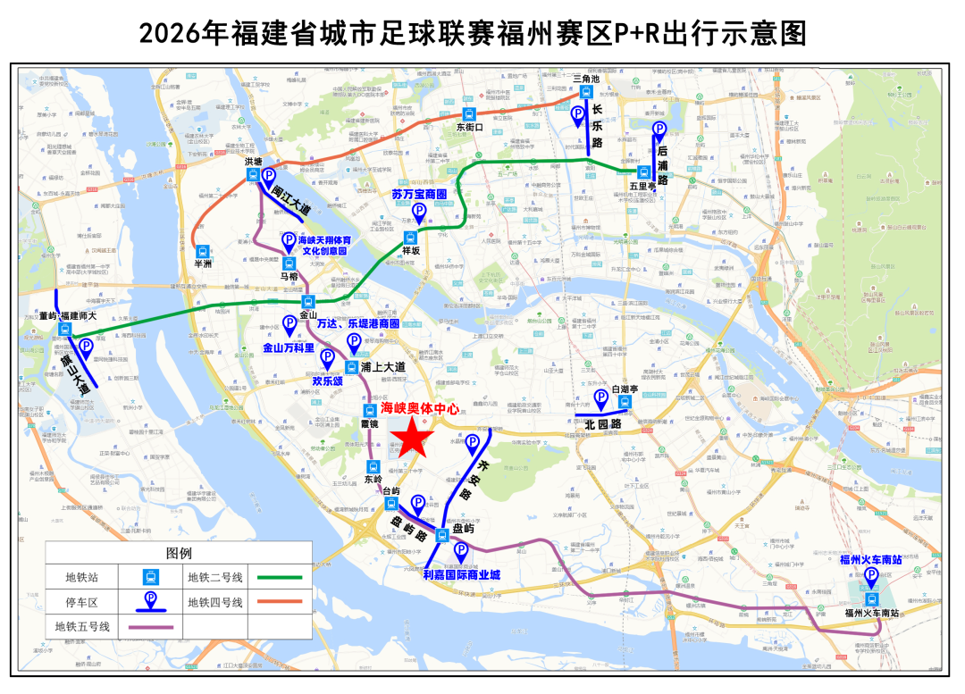 观赛群众可在地铁2号线、4号线、5号线沿线相关站点周边道路斜列式停车或选择附近商圈的停车场,再换乘地铁前往观赛。