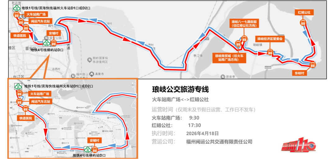 记者从福州市交通运输局获悉,福州闽运公交将于2026年4月18日正式开通琅岐公交旅游专线。