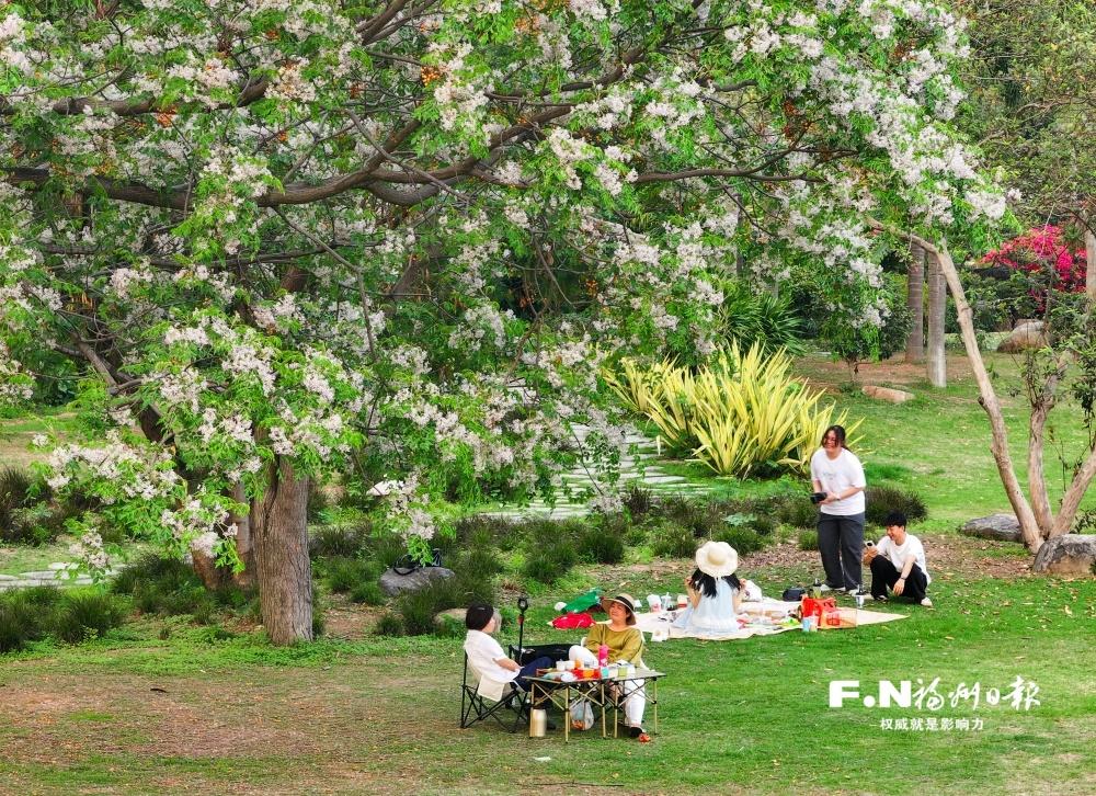 “今年我们将苦楝树下的草坪打造成共享空间,向市民游客免费开放,让大家在亲近自然,了解苦楝的特性与价值,同时也接受红色教育。”闽江公园管理处相关工作人员介绍。
