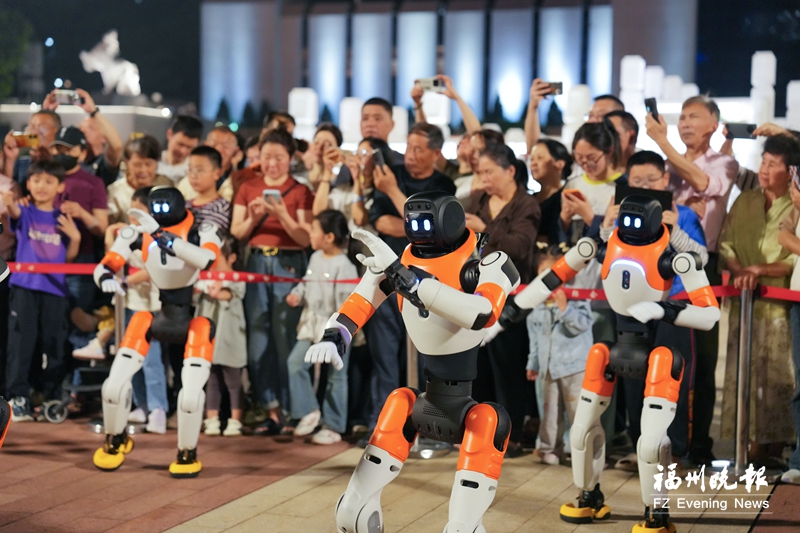 福州五一广场的路演将持续到4月21日晚。夜幕降临,机器人随着音乐节奏舞动,鼓槌落下的每一次重击,都像是在敲响未来的大门。这些钢铁舞者不仅赢得了阵阵掌声,更见证了一座城市在科技创新道路上的坚实步伐。